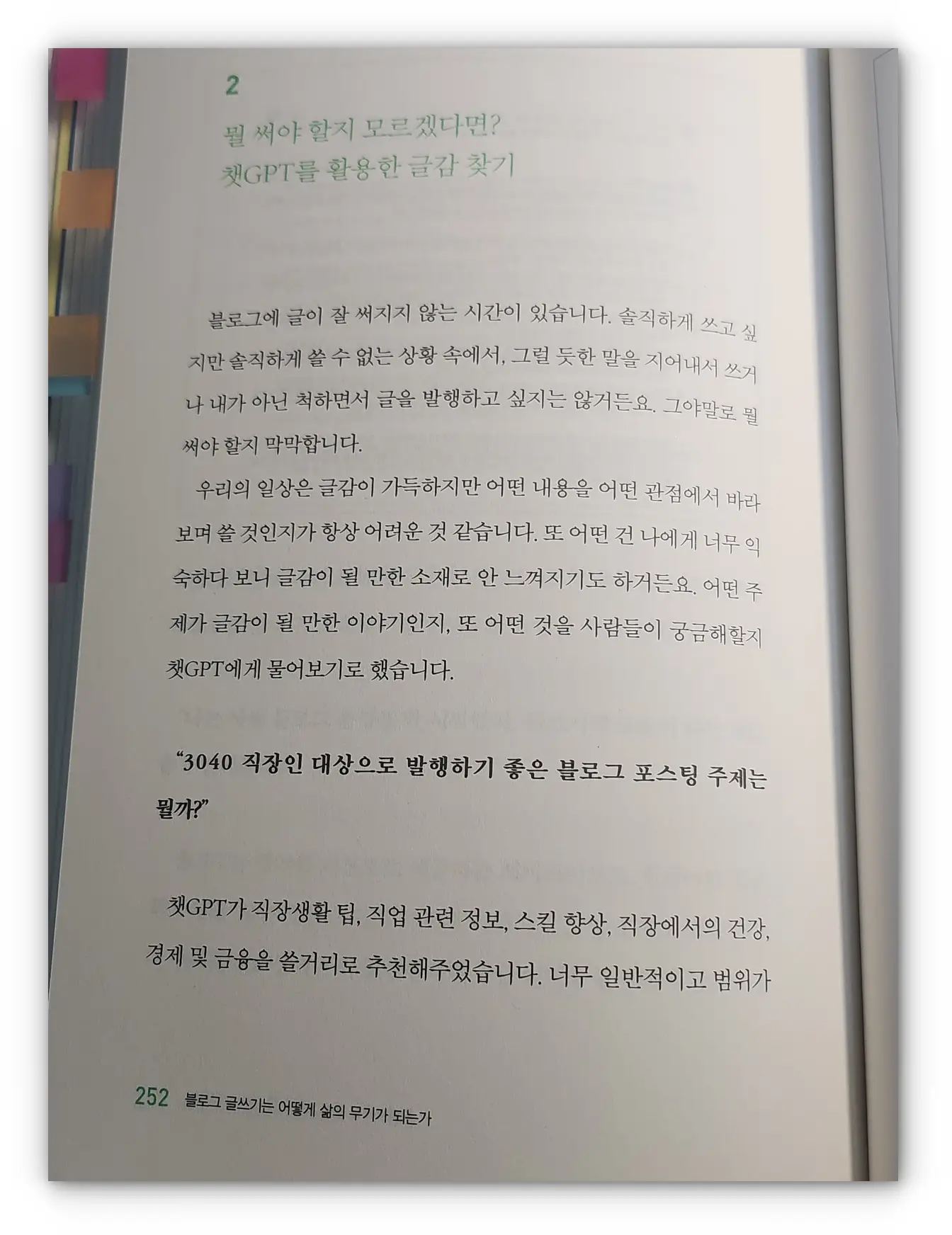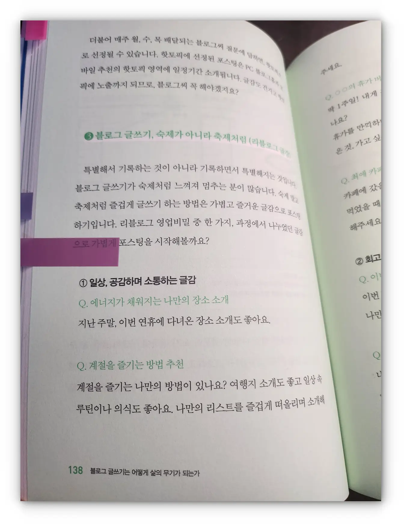 이 책에서 좋았던 부분은 블로그 글감 찾는 법에 대해 상세히 알려주신 점이에요.